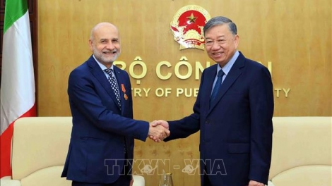(VOV5) - Chiều nay (02/08), tại Hà Nội, Đại tướng Tô Lâm, Bộ trưởng Bộ Công an, tiếp Đại sứ Cộng hòa Italy tại Việt Nam Antonio Alessandro đến chào từ biệt nhân kết thúc nhiệm kỳ công tác.