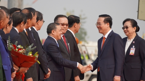 Chủ tịch nước Võ Văn Thưởng đến Vientiane, bắt đầu thăm chính thức Lào