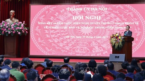 Chủ tịch nước Võ Văn Thưởng dự Hội nghị Tổng kết 10 năm thực hiện Chiến lược bảo vệ Tổ quốc của thành phố Hà Nội