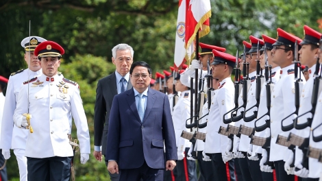 (VOV5) - Sáng nay (9/2), tại Singapore, Thủ tướng Singapore Lý Hiển Long chủ trì lễ đón chính thức Thủ tướng Việt Nam Phạm Minh Chính. Sau lễ đón, hai Thủ tướng tiến hành hội đàm.