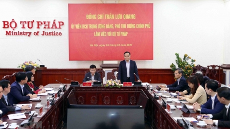 (VOV5) - Chiều 8/2, tại Hà Nội, Phó Thủ tướng Chính phủ Trần Lưu Quang làm việc với Bộ Tư pháp về tình hình thực hiện và kết quả chủ yếu trong một số lĩnh vực công tác tư pháp.