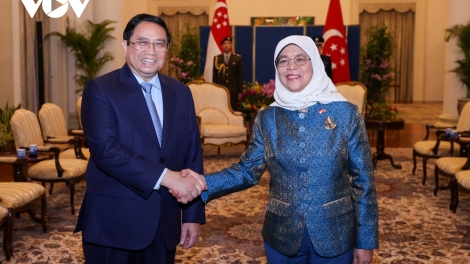 (VOV5) - Trong khuôn khổ chuyến thăm chính thức Singapore, sáng nay (9/2), tại Dinh Istana, Thủ tướng Chính phủ Phạm Minh Chính hội kiến Tổng thống Singapore Halimah Yacob.