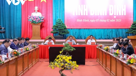 (VOV5) - Thủ tướng Phạm Minh Chính yêu cầu tỉnh Bình Định chú trọng thực hiện 3 đột phá chiến lược gồm thể chế, hạ tầng chiến lược và đào tạo nguồn nhân lực, cải cách hành chính.