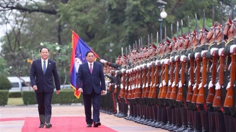 (VOV5) - Trong khuôn khổ chuyến thăm chính thức Lào, chiều nay (11/01), tại Vientiane, Thủ tướng Phạm Minh Chính tới chào Tổng Bí thư, Chủ tịch nước Lào Thongloun Sisoulith.
