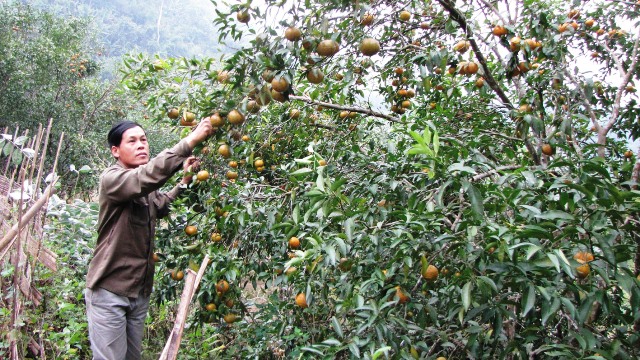 | Gia đình anh Lý Tiến Cát, thôn Bản Mún 1, một bản người Dao xa xôi của xã Dương Phong, huyện Bạch Thông làm giàu từ cây ăn trái (Ảnh: Báo Bắc Cạn) |