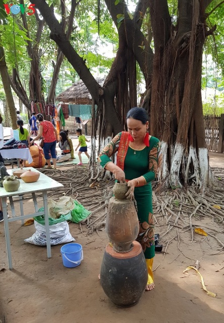 Nghệ nhân Đào Thị Tuyết Hằng giới thiệu về sản phẩm làng gốm Bàu Trúc |