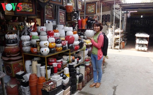 Du khách thích thú khi đến với chợ gốm Bát Tràng - Ảnh: Lan Anh/VOV5 |