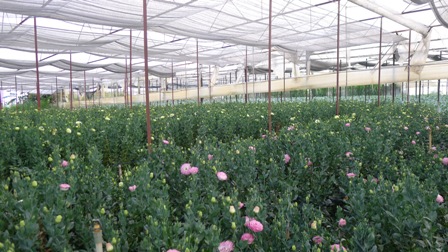| Vườn hoa trồng trong nhà kính của gia đình anh Hậu |