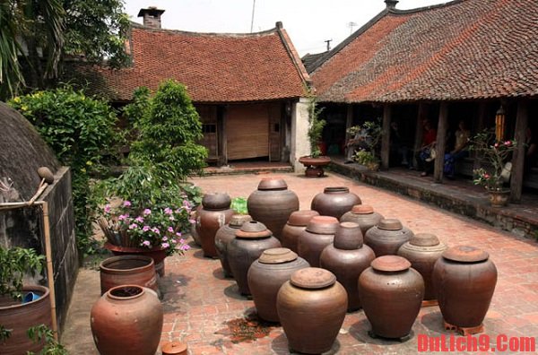| Một ngôi nhà cổ ở Đường Lâm có rất nhiều chum tương do người dân tự làm |