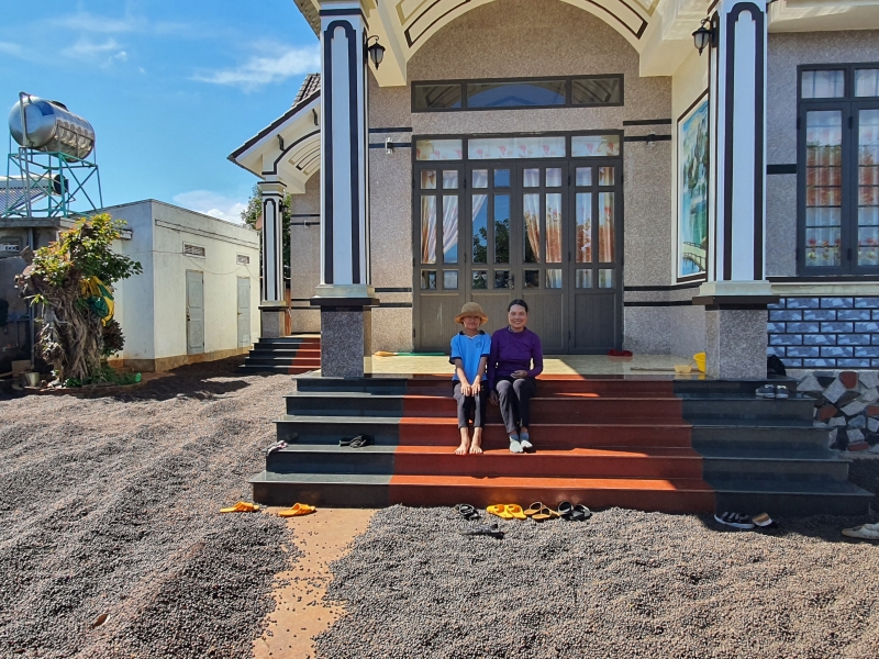 Con đường vào làng được bê tông hóa sạch sẽ dẫn lối tới những căn nhà khang trang, rộng rãi, với khoảng sân bê tông rộng để phơi cà phê không còn là hình ảnh hiếm gặp khi đến với làng Dơk Rơng, xã Glar, huyện Đak Đoa, tỉnh Gia Lai, trong vài năm trở lại đây. Để có được sự phát triển này, nhiều năm qua, người dân làng đã mạnh dạn áp dụng khoa học, kỹ thuật trong trồng trọt, chăn nuôi, đầu tư máy móc, phương tiện để phục vụ sản xuất. Từ đó, số hộ có thu nhập cao ngày một nhiều: “Trước đây cuộc sống khó khăn lắm. Từ khi xây dựng nông thôn mới mình được tiếp cận cách thức trồng cà phê đem lại hiệu quả kinh tế. Bây giờ, hàng năm, trừ chi phí, gia đình có nguồn thu khoảng 200 triệu từ trồng cà phê. Mấy năm trước tôi cũng mạnh dạn xây mới căn nhà mái thái trị giá 700 triệu.”