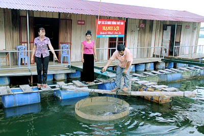 | Mô hình nuôi cá tầm của HTX Hạnh Lợi ở bản Nặm Uôn, xã Chiềng Ơn |