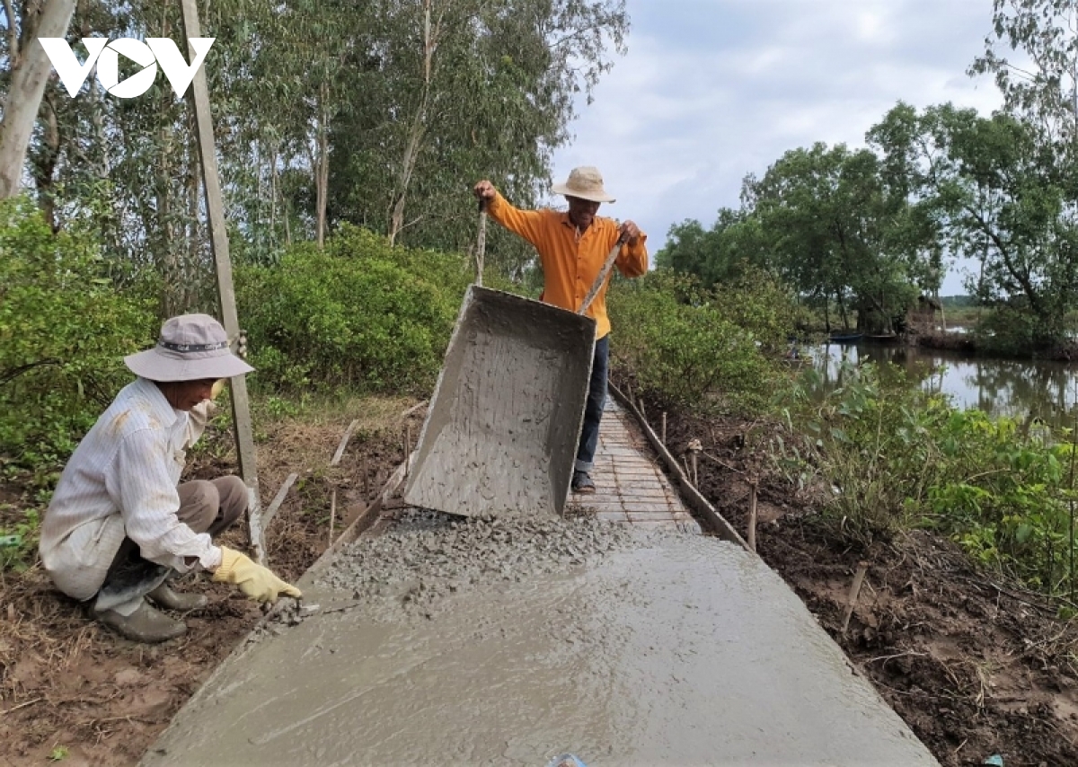 Tuyến đường bê tông tuyến Kênh Thủy Lợi (ấp Láng Cùng, xã Thạnh Phú, huyện Cái Nước, Cà Mau) có chiều dài trên 1.000 mét vừa được hoàn thành. Trước đây, tuyến đường này bị bể nát nghiêm trọng, người dân đi lại rất khó khăn. Vào đầu năm nay, chính quyền địa phương vận động người dân trên tuyến đóng góp cùng làm lại đường. Tất cả các hộ dân trên tuyến đều đồng lòng. Bà con không chỉ hiến đất, chuẩn bị sẵn mặt bằng mà còn góp tiền mua vật liệu để tuyến đường nhanh chóng thành hình. Bà Trần Thị Mến cho biết, công trình hoàn thành sẽ đấu nối với các tuyến lộ liên xóm khác nên việc đi lại của người dân rất thuận tiện, nhất là khi mùa mưa đã đến: “Hồi xưa không có công trình lộ lớn như bây giờ. Có chủ trương làm lộ mới thì gia đình cũng cố gắng cùng làm, rồi làm hàng rào cây xanh tạo cảnh quan nữa. Đi ra vào cũng vui cửa vui nhà, đi đứng thoải mái, khỏe hơn nhiều”.