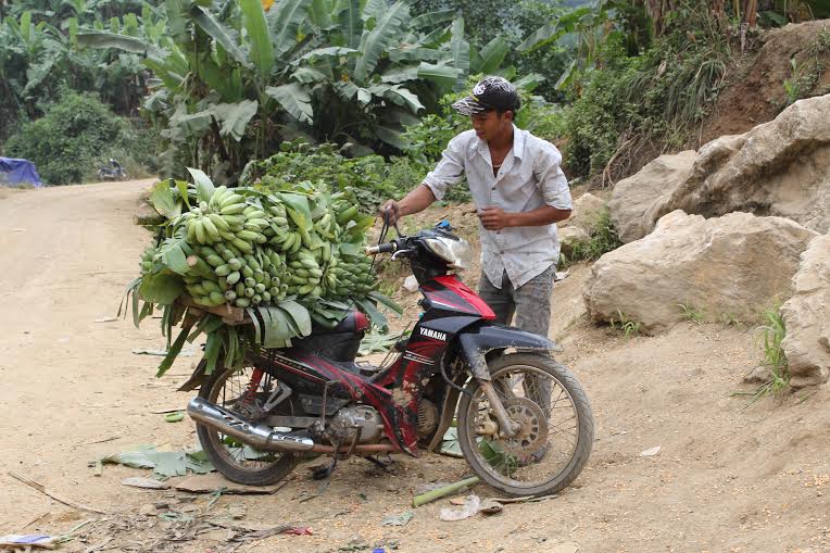 | Người dân xã Huổi Luông chở chuối đi bán (Ảnh: Báo Lai Châu) |
