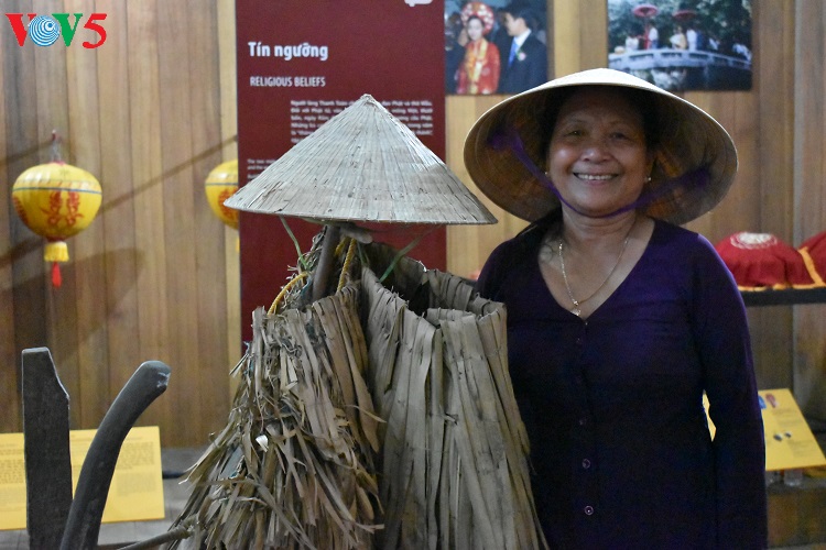 Bà Nguyễn Thị Kiệm, thuyết minh viên của cộng đồng du lịch Thanh Toàn, cho biết: “Thời kỳ chưa có công nghiệp hóa, hiện đại hóa thì người ta dùng những dụng cụ thô sơ như thế này để xay lúa, giã gạo, rồi những dụng cụ cày bừa, trục, đạp nước. Những dụng cụ này gắn liền với đời sống thường ngày của người dân nơi đây, được người dân lưu giữ được, sau đó hiến tặng cho nhà trưng bày nông cụ.”