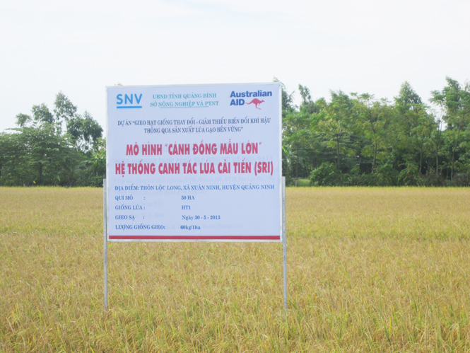 | Mô hình cánh đồng mẫu lớn ở thôn Lộc Long mang lại hiệu quả kinh tế cao (Ảnh: Báo Quảng Bình) |
