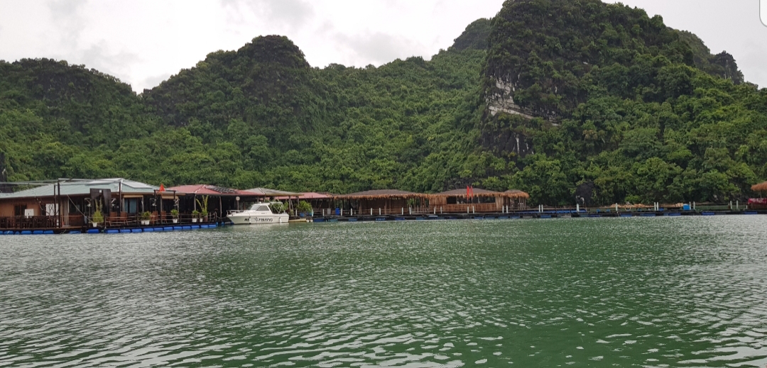 Một nhà bè nuôi trồng thủy hải sản ở làng Vung Viêng. Ảnh: Ngọc Anh