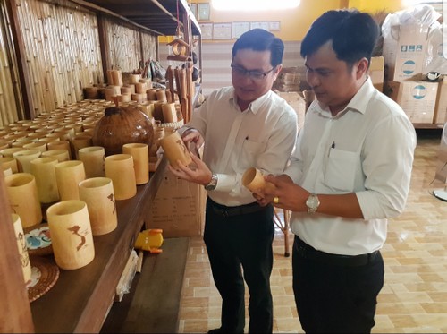 Lãnh đạo địa phương tham quan Hợp tác xã mây tre đan Đất Phương Nam. Ảnh: Ngọc Anh |