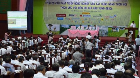 (VOV5)- Tái cơ cấu phát triển nông nghiệp gắn với xây dựng nông thôn mới, thích ứng với biến đổi khí hậu vùng Đồng bằng Sông Cửu Long (ĐBSCL) là chủ đề của Hội thảo diễn ra sáng nay, tại Sóc Trăng
