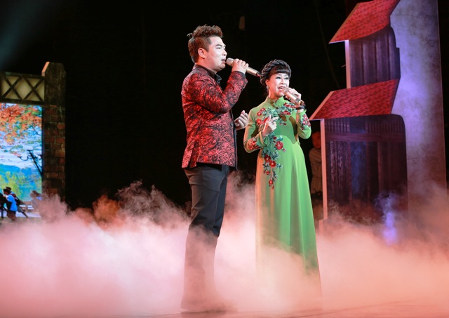 Ca sĩ Châu Tuấn và NSƯT Hồng Liên trong chương trình "Hà Nội trong lòng người xa xứ" |