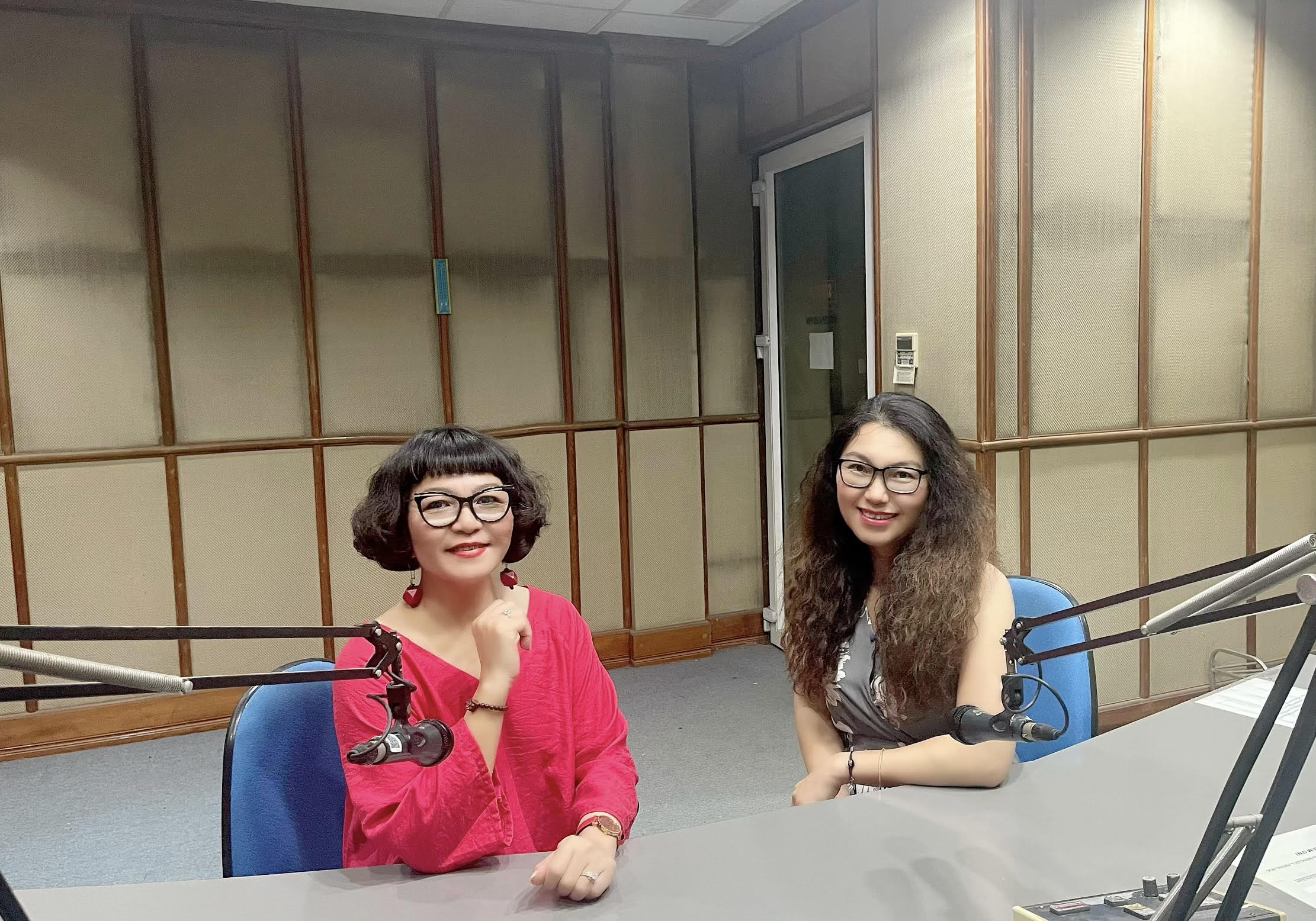 Ca sĩ Mai Loan và BTV Bảo Trang tại phòng thu của VOV |
