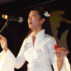 Nghệ sĩ Camille Huyền trên sân khấu |