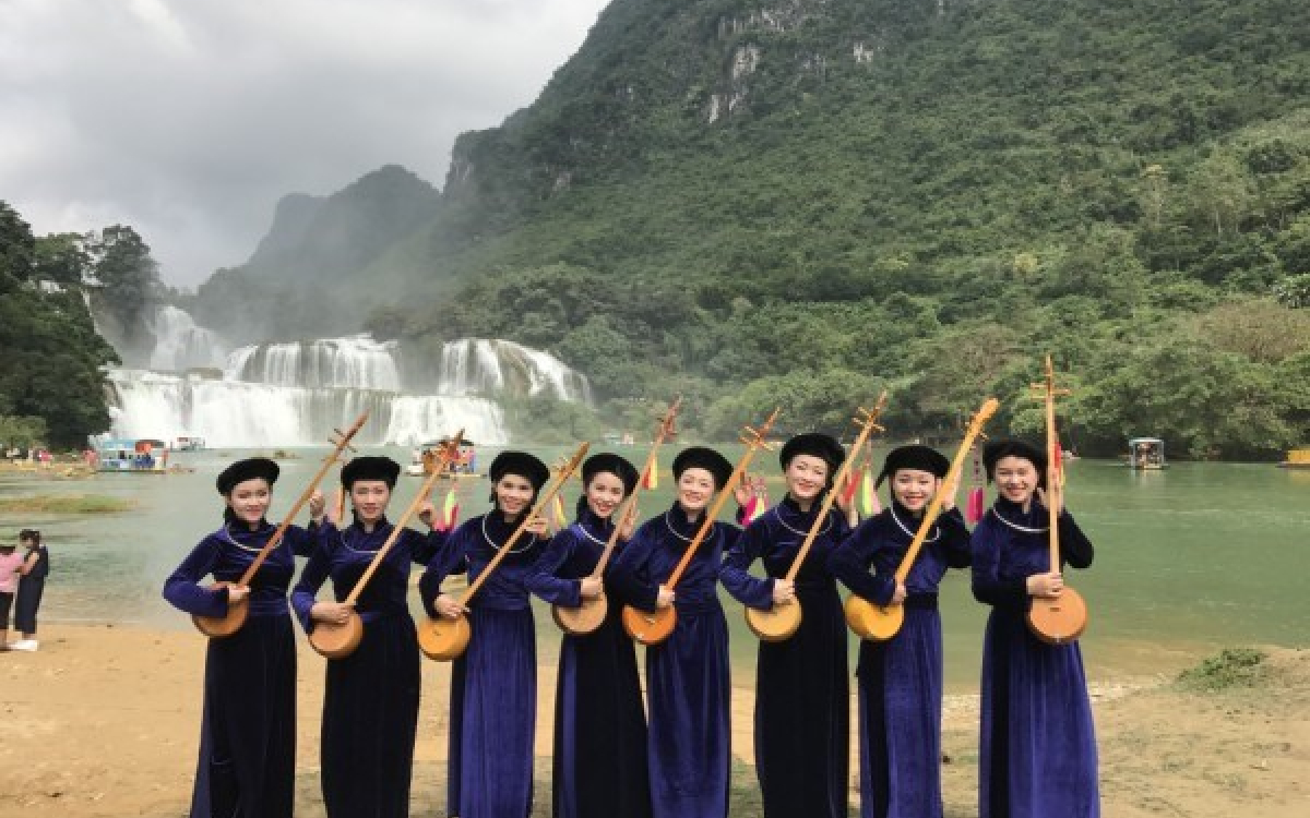 Đội văn nghệ quần chúng huyện Trùng Khánh, Cao Bằng biểu diễn hát Then, đàn tính |