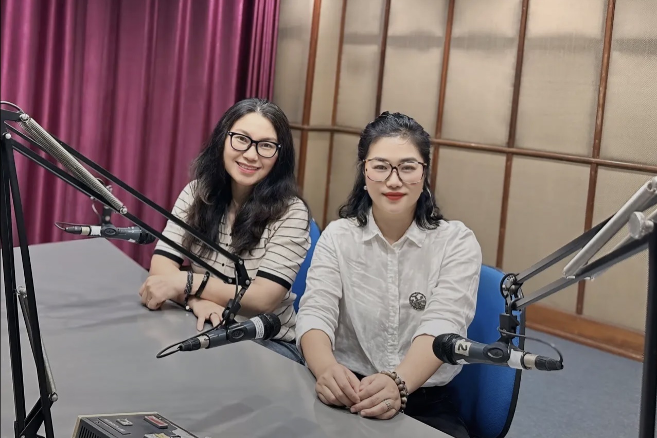 Ca sĩ Lê Ngọc Phương Anh trong studio của VOV |
