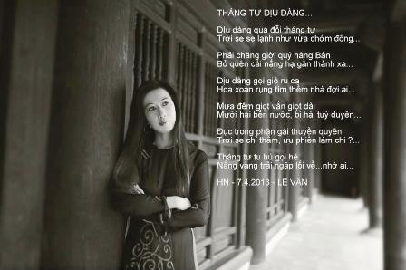 Với cô giáo Lê Vân, đứng trên bục giảng là cái nghiệp còn đam mê âm nhạc, thơ ca không những giúp cô cân bằng cuộc sống tinh thần mà cũng nhờ những bộ môn nghệ thuật ấy cho cô cơ hội được chia sẻ những khó khăn vất vả với cộng đồng. Cô giáo Lê Vân kể: Rất ngẫu nhiên trong một lần bọn mình tổ chức đi làm từ thiện tại Trung tâm số 4 Ba Vì, tự nhiên mình cảm thấy nếu nhìn toàn diện các con ở đây so với học sinh của trường thì các con rất đáng thương vì khoảng cách quá lớn. Mình nghĩ: có thực mới vực được đạo, vì thế mình đã quyết định làm một điều gì đó và ý tưởng ra mắt một Album nhạc gây quỹ từ thiện để có thể có kinh phí mua những vật dụng đồ dùng học tập cho các con và mình đã quyết định ra Album Lắng nghe mùa Thu, bởi đã là người Hà Nội thì gắn liền với mùa thu với những ký ức trong trẻo của tuổi học trò. Khi nói thì đơn giản nhưng làm thì rất vất vả vì mình không phải là ca sĩ chuyên nghiệp, cả ngày đứng lớp nên phải tranh thu thu thanh vào giờ nghỉ trưa nên không chỉ mình mà cả ê kíp thực hiện cũng rất vất vả và phải cố gắng. Tuy là Album nhạc nhưng mình cũng muốn lồng ghép một phần công việc của mình đó là việc rèn chữ đẹp cho học sinh đó là nét đẹp là hồn dân tộc. vì thế toàn bộ lời ca được mình viết tay để phần nào truyền tải được thông điệp nét chữ nét người, lưu giữ hồn dân tộc.