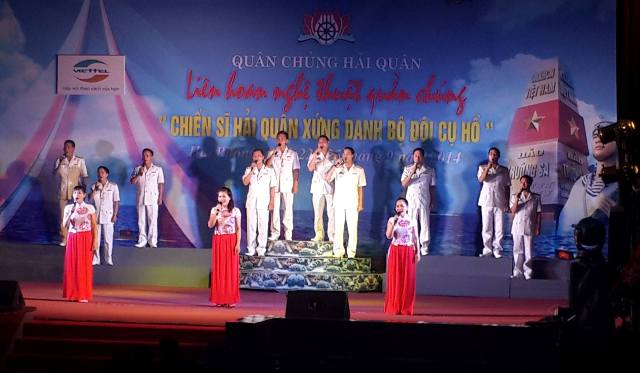 (VOV5) - Trong những ngày qua, tại Thành phố Hải Phòng đã diễn ra Liên hoan nghệ thuật quần chúng “Chiến sĩ Hải quân xứng danh Bộ đội Cụ Hồ” năm 2014. Hơn 400 diễn viên đến từ 12 đơn vị khu vực phía Bắc của Quân chủng Hải quân tham gia liên hoan với các tiết mục ca ngợi Đảng quang vinh, Bác Hồ vĩ đại, quân đội, Quân chủng Hải quân anh hùng; tôn vinh hình ảnh người chiến sĩ Hải quân trong thực hiện các nhiệm vụ, nhất là nhiệm vụ bảo vệ biển, đảo thiêng liêng của Tổ quốc.