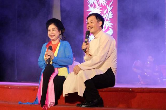 Nhà lý luận âm nhạc Nguyễn Quang Long và NSND Thanh Hoài trong đêm Tinh hoa nhạc Việt - Ảnh: Nhiên Bình |