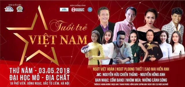 Tuổi trẻ Việt Nam là tên của chương trình ca nhạc thiện nguyện, lần đầu tiên được tổ chức, đến với các bạn trẻ tại các trường Đại học trên địa bàn thành phố Hà Nội và một số tỉnh thành lân cận. Ngày 3/5 vừa qua, số đầu tiên của chương trình này đã diễn ra rất thành công tại trường Đại học Mỏ - địa chất, với hoạt động tuyên truyền về an toàn giao thông và đặc biệt là một đêm nhạc sôi động quy tụ nhiều ca sĩ, nghệ sĩ nổi tiếng.