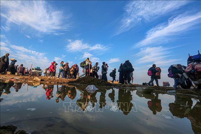 Người tị nạn Palestine trở về nhà tại Dải Gaza ngày 28/1/2025. Ảnh: THX/TTXVN