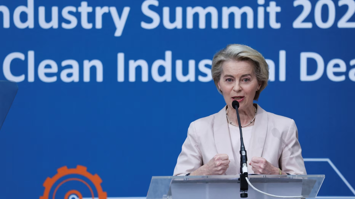 hủ tịch EC Ursula von der Leyen phát biểu tại "Hội nghị thượng đỉnh Công nghiệp Châu Âu 2025, Thỏa thuận Công nghiệp Sạch" tại Antwerp (Bỉ) ngày 26/2. Ảnh: Reuters |