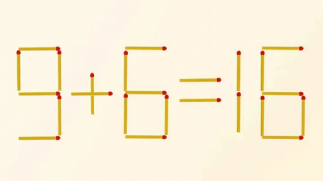 Di chuyển que diêm để phép tính 9 + 6 = 16 từ sai thành đúng