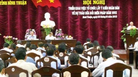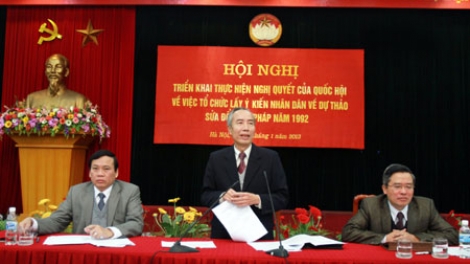 (VOV5) - Ngày 23-11-2012, tại kỳ họp thứ 4, Quốc hội khóa XIII đã thông qua Nghị quyết số 38/2012/QH13 về việc tổ chức lấy ý kiến nhân dân về dự thảo sửa đổi Hiến pháp năm 1992, bắt đầu từ ngày 02-01-2013 và kết thúc vào ngày 31-3-2013.