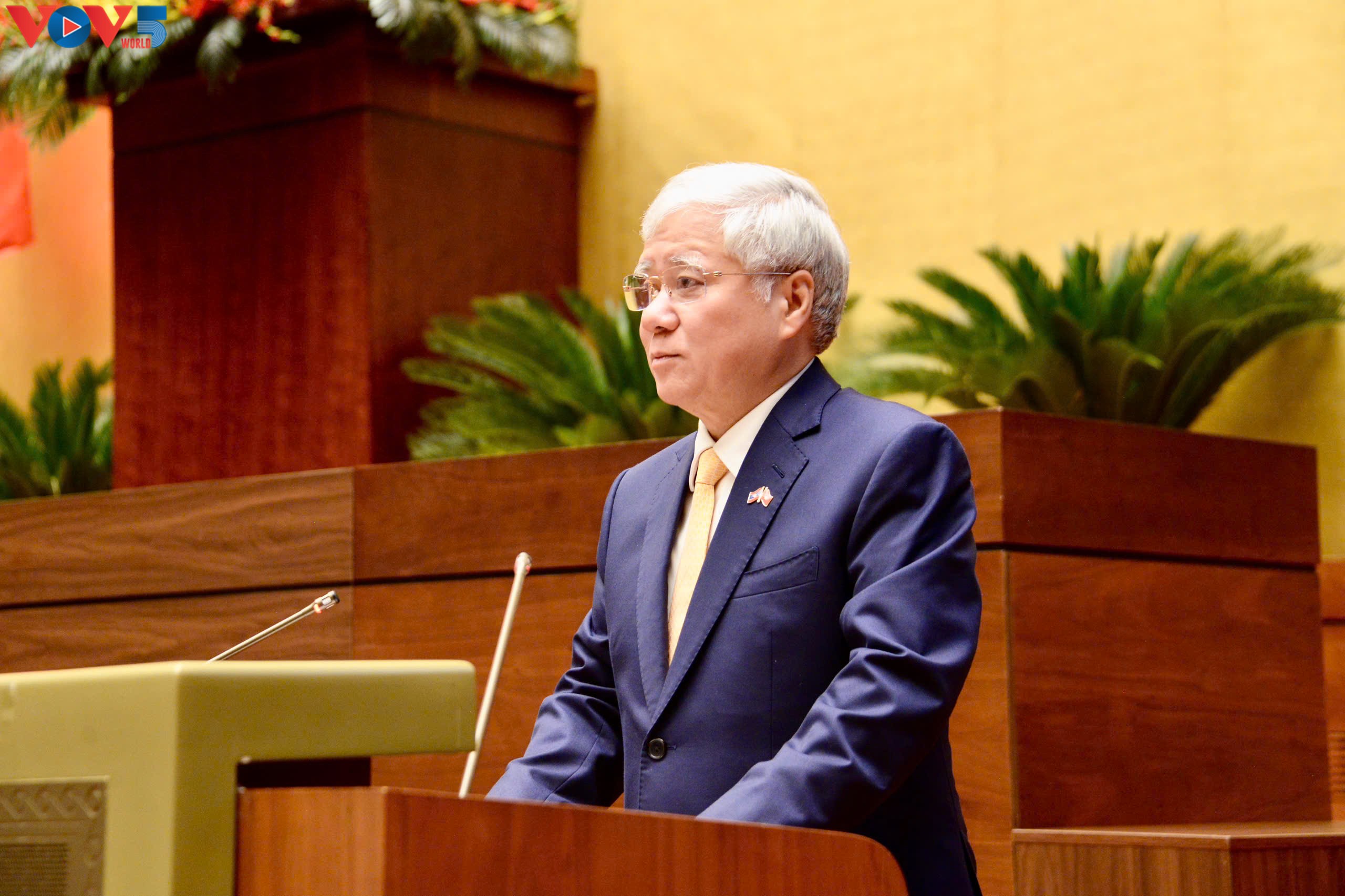 Thay mặt Đảng ủy Quốc hội, Ủy viên Bộ Chính trị, Phó Chủ tịch Thường trực Quốc hội Đỗ Văn Chiến đã thông báo nhanh kết quả của Đại hội Đại biểu toàn quốc lần thứ XIV của Đảng. Ảnh: VOV |