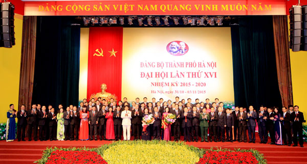 | Ban Chấp hành Đảng bộ thành phố Hà Nội khóa XVI ra mắt tại Đại hội (Ảnh: CPV) |