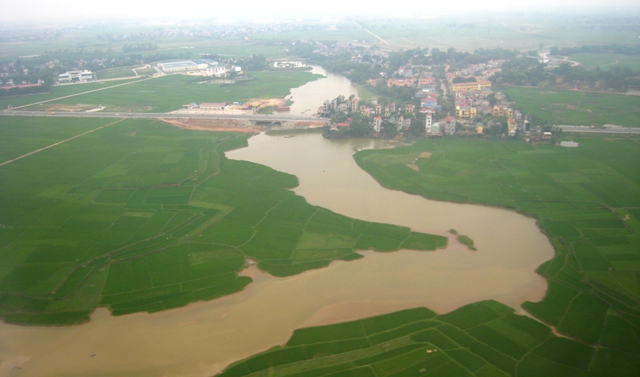 Một đoạn sông Hồng nhìn từ trên cao