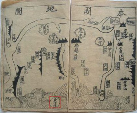 | Tấm bản đồ trong sách Khải đồng thuyết ước có vẽ Hoàng Sa Chử (phần đảo Hoàng Sa được khoanh ô vuông đỏ). |
