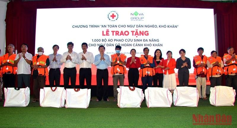Ngày 2/10, tại thành phố Phan Thiết và thị xã La Gi, Hội Chữ thập đỏ Việt Nam phối hợp cùng Tập đoàn NovaGroup tổ chức trao tặng 1.000 bộ áo phao cứu sinh đa năng cho ngư dân nghèo, cận nghèo, có hoàn cảnh khó khăn của tỉnh Bình Thuận.
