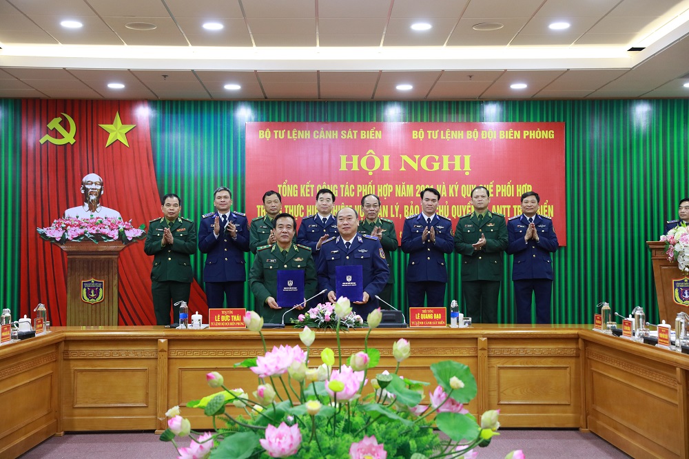 Ngày 12/1, tại Hà Nội, Bộ Tư lệnh Cảnh sát biển Việt Nam và Bộ Tư lệnh Bộ đội Biên phòng phối hợp tổ chức hội nghị Tổng kết công tác phối hợp năm 2021 và ký quy chế phối hợp trong thực hiện nhiệm vụ quản lý, bảo vệ chủ quyền, an ninh trật tự trên biển.