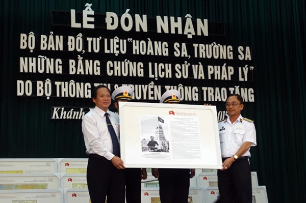 Thứ trưởng Trương Minh Tuấn đại diện Bộ Thông tin và Truyền thông trao tặng hơn 100 bản đồ, tư liệu cho Học viện Hải quân thuộc Quân chủng Hải quân Việt Nam. Đây là một phần trong số các tư liệu được tập hợp từ các nhà nghiên cứu, học giả trong nước và quốc tế. Các tài liệu có giá trị lịch sử và pháp lý mạnh mẽ trong việc khẳng định và chứng minh Việt Nam đã xác lập chủ quyền đối với hai quần đảo Hoàng Sa và Trường Sa từ rất sớm.