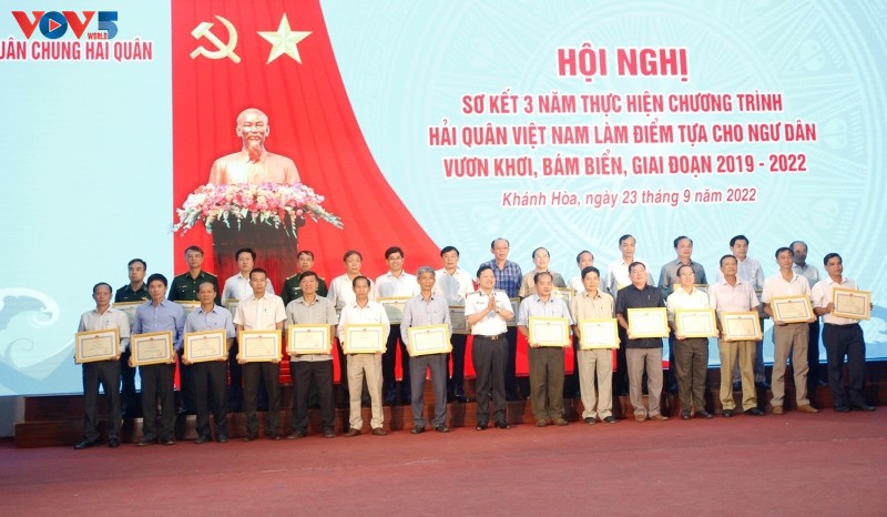 Ngày 23/9, tại Căn cứ Quân sự Cam Ranh, tỉnh Khánh Hòa, Bộ Tư lệnh Hải quân tổ chức sơ kết 3 năm thực hiện Chương trình “Hải quân Việt Nam làm điểm tựa cho ngư dân vươn khơi, bám biển” giai đoạn 2019 - 2022. 3 năm qua, Quân chủng Hải quân phối hợp với 28 tỉnh, thành phố ven biển triển khai chương trình “Hải quân Việt Nam làm điểm tựa cho ngư dân vươn khơi, bám biển”.