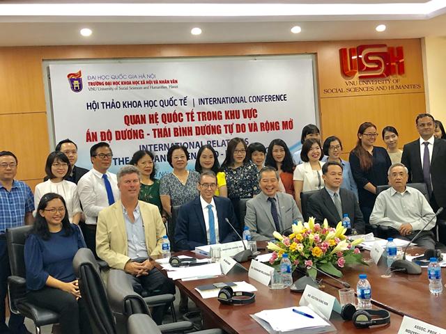 Hội thảo khoa học quốc tế Quan hệ quốc tế trong khu vực Ấn Độ-Thái Bình Dương tự do và rộng mở diễn ra sáng nay (26/7), tại Hà Nội. Hội thảo do Trường Đại học Khoa học Xã hội và Nhân văn tổ chức, với sự tham dự của nhiều nhà nghiên cứu, giáo sư, học giả Việt Nam và quốc tế.