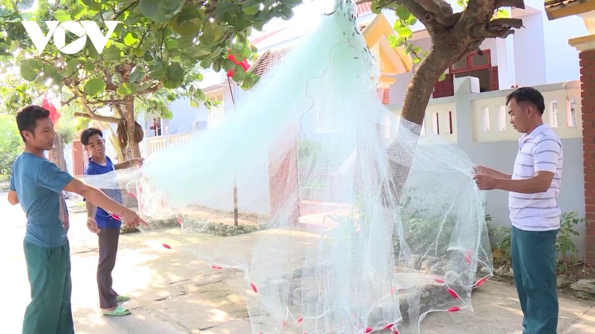 Người dân huyện đảo Trường Sa sửa sang ngư cụ chuẩn bị ra khơi. Ảnh: VOV |