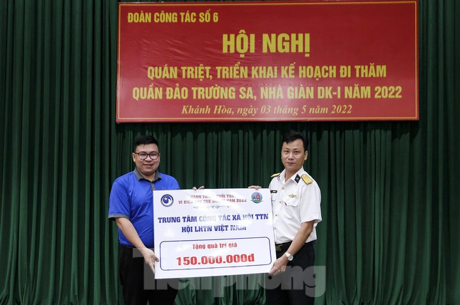 Đại diện các đơn vị trao biển tặng quà "Hành trình tuổi trẻ vì biển đảo quê hương" năm 2022. Ảnh: Hoàng Mạnh Thắng/tienphong.vn |