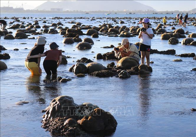 Mỗi khi nước triều rút, bãi rạn san hô trải dài cả km ở biển Đông Hải ở thành phố Phan Rang - Tháp Chàm (Ninh Thuận) hiện lên với muôn hình dáng, màu sắc độc đáo. Ảnh: Nguyễn Thành/TTXVN |