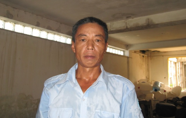 | Anh Dương Đình Vinh trong khu vực sửa chữa máy móc. |