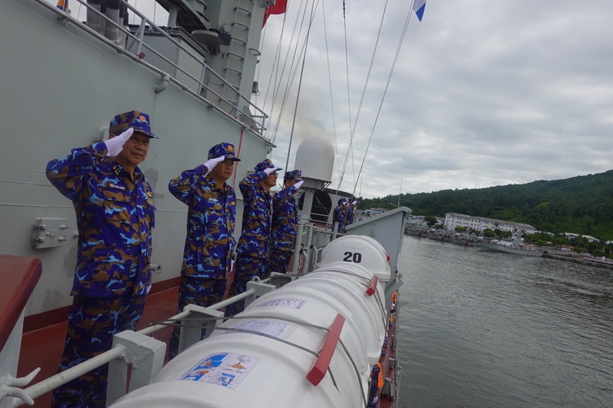Tàu 20 và Đoàn công tác chào cảng, lên đường thực hiện nhiệm vụ. Ảnh: qdnd.vn