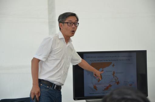 | Nhà báo Võ Trung Dung phân tích môi trường địa lý, chiến lược, chính trị của Biển Đông. Ảnh: baotintuc.vn |